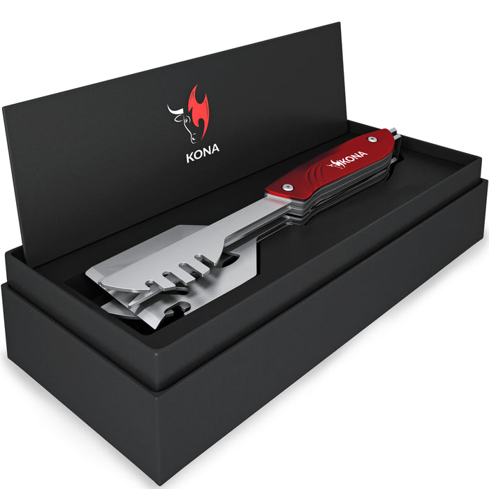 Kona Tailgater BBQ Multi Grill Tool - Removable Spatula, Fork & Tongs - Beautiful Gift Box