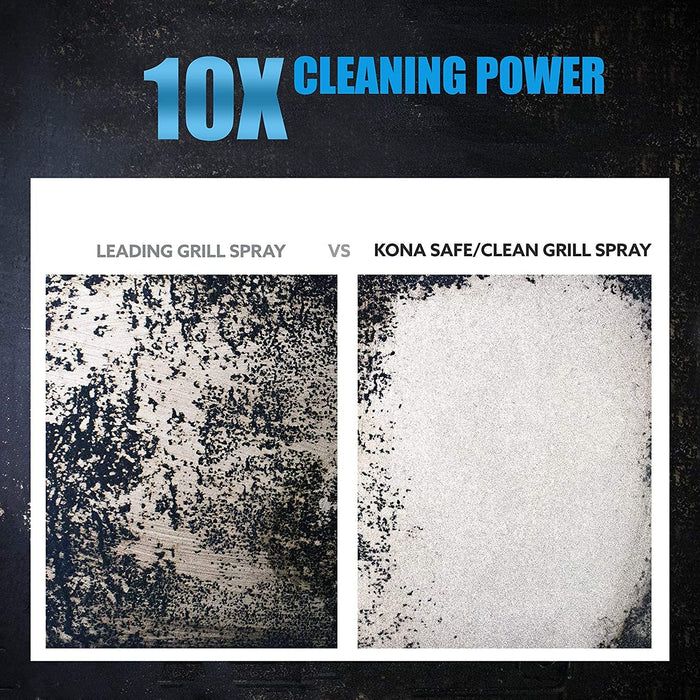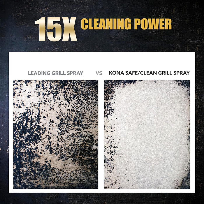• BEST NO-DRIP GRILL & OVEN DEGREASING - Watch grease dissolve with the new Kona Safe/Clean grill cleaner. A breakthrough powerful spray cleaner that breaks down tough grease & char stains by clinging to the surface rather than dripping off. Removes tough baked in grease, dirt and food particles.