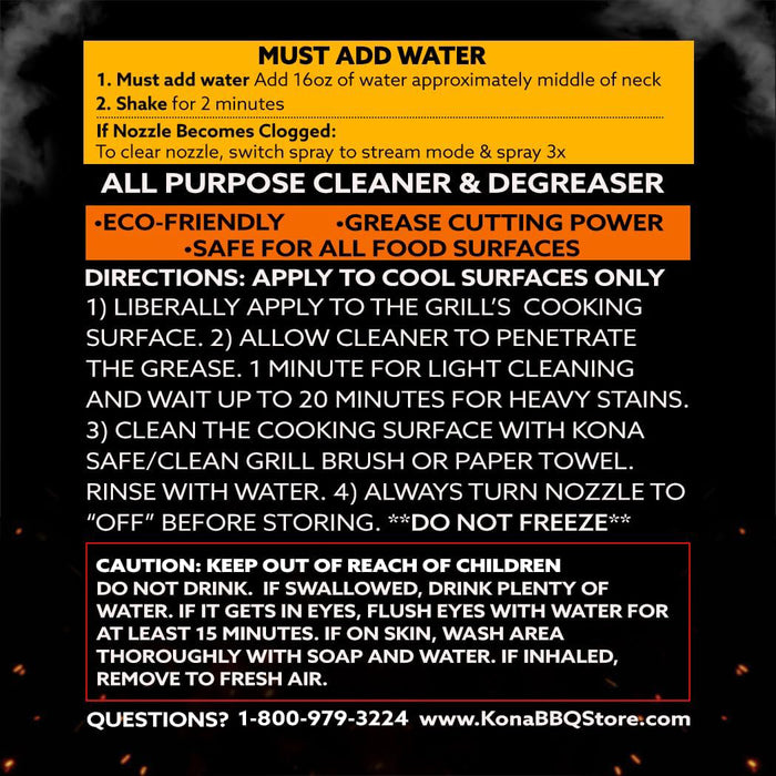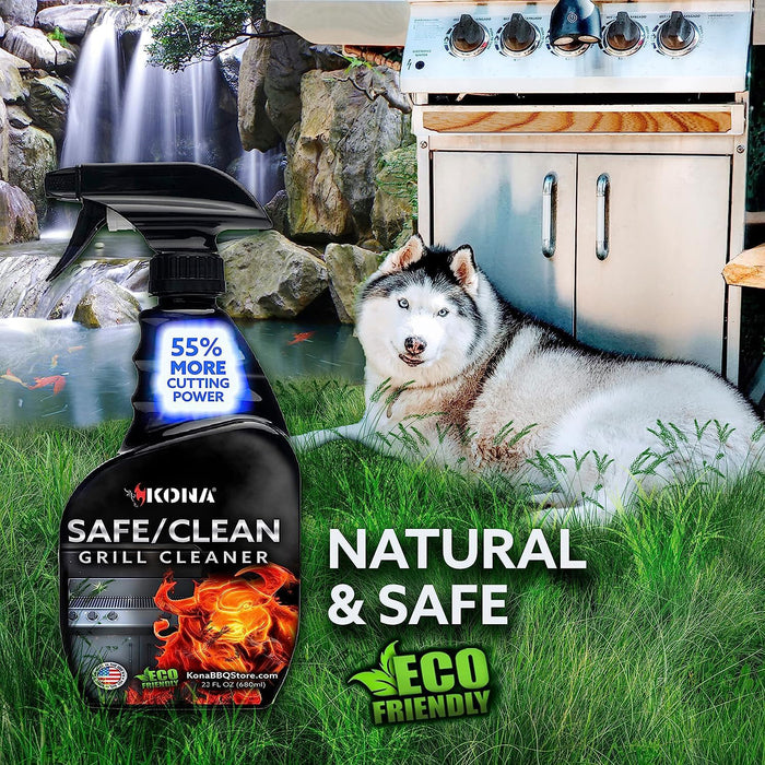 Kona Safe/Clean Concentrated Grill Cleaner Spray - Professional Strength, Just Add Water, No-Drip Formula - Eco-Friendly, Food Safe BBQ Degreaser, Biodegradable - 23oz