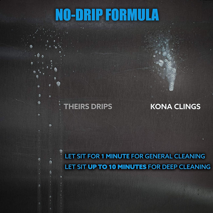 • BEST NO-DRIP GRILL & OVEN DEGREASING - Watch grease dissolve with the new Kona Safe/Clean grill cleaner. A breakthrough powerful spray cleaner that breaks down tough grease & char stains by...